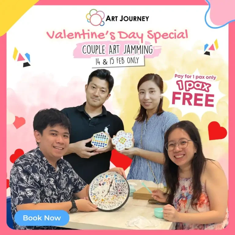tan soon kiatTrustindex verifies that the original source of the review is Google. very good workshop to make coasters. the instructors are very ftiendly and helpful. highly recommend. winnie leongTrustindex verifies that the original source of the review is Google. Very fun Penny LeeTrustindex verifies that the original source of the review is Google. Very positive experience! Highly recommended! HIRONTrustindex verifies that the original source of the review is Google. ❤️🥰🥰🥰🥰🥰🥰 yleileen ChewTrustindex verifies that the original source of the review is Google. Brought my 2 kiddos there for the mosaic workshops and they had a blast there! They got to choose their sparkling mosaic tiles from the huge collection and the shape of their coaster! The staff are friendly and patient! Even my 3.5 years old didi was able to handle the mosaic coaster with some help from us! The kiddos were thrilled over their masterpiece! It's a great place for family bonding and to engage kiddos with fun and creativity activities! Hazel ChooTrustindex verifies that the original source of the review is Google. Art Journey classes are fun and engaging, the children love it. The teacher is friendly and patient. Zhongyan LimTrustindex verifies that the original source of the review is Google. Chanced upon this place for an area to work and drink coffee. Was offered a durian cheesecake for sampling - pretty good and tasteful! Worth a try! Friendly and polite service too. Vivian WidjajaTrustindex verifies that the original source of the review is Google. We had such a lovely time at Art Journey! My daughter joined the mosaic coaster workshop and absolutely loved every minute of it. The staff were super friendly and patient, guiding her through the whole process while still letting her express her own creativity. The space is bright, cosy, and very welcoming - perfect for kids and families. It was such a wholesome bonding experience, and she was so proud to bring home her finished coaster. Highly recommend this place for a fun and meaningful activity! chewy JaSTrustindex verifies that the original source of the review is Google. Brought the girls to a DIY mosaic art workshop, and it was a fantastic experience. The instructor, Jen was knowledgeable, patient, and super friendly, guiding the girls to create their own stunning mosaic art pieces. Materials were all provided, and the girls had the freedom to choose colors and designs they loved. The workshop was well-structured yet flexible, allowing the girls to work at their own pace without feeling rushed. Everyone had a fun and safe experience. The best part? We got to bring home the finished masterpiece! I would definitely recommend this place for a fun DIY session. There’s also a cafe for some drinks and desserts .